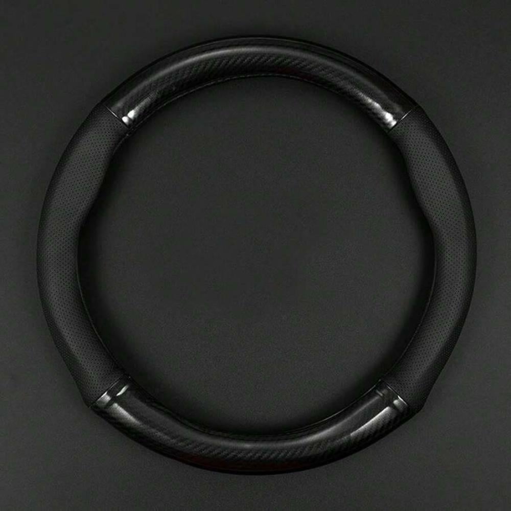 أضف لمسة فخامة وتحكم أفضل مع غطاء عجلة القيادة المصنوع من الجلد والألياف الكربونية. تصميم أنيق ومريح للمسافات الطويلة.